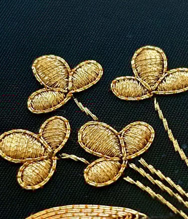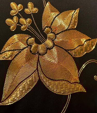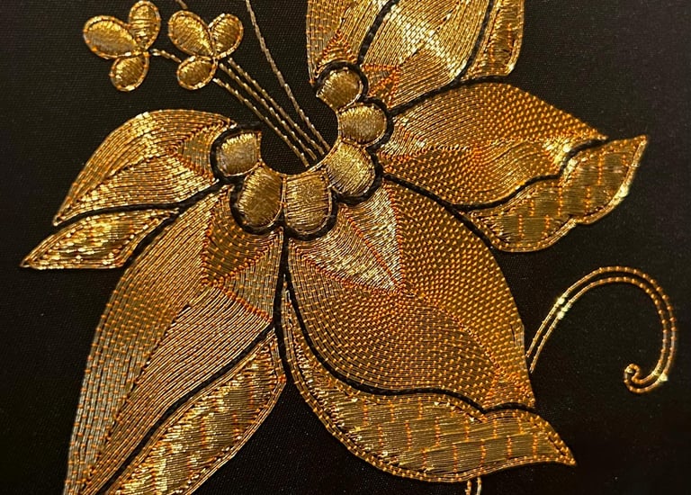 Selon les projets, je peux utiliser du fil de soie, des perles, du fil d'or ...